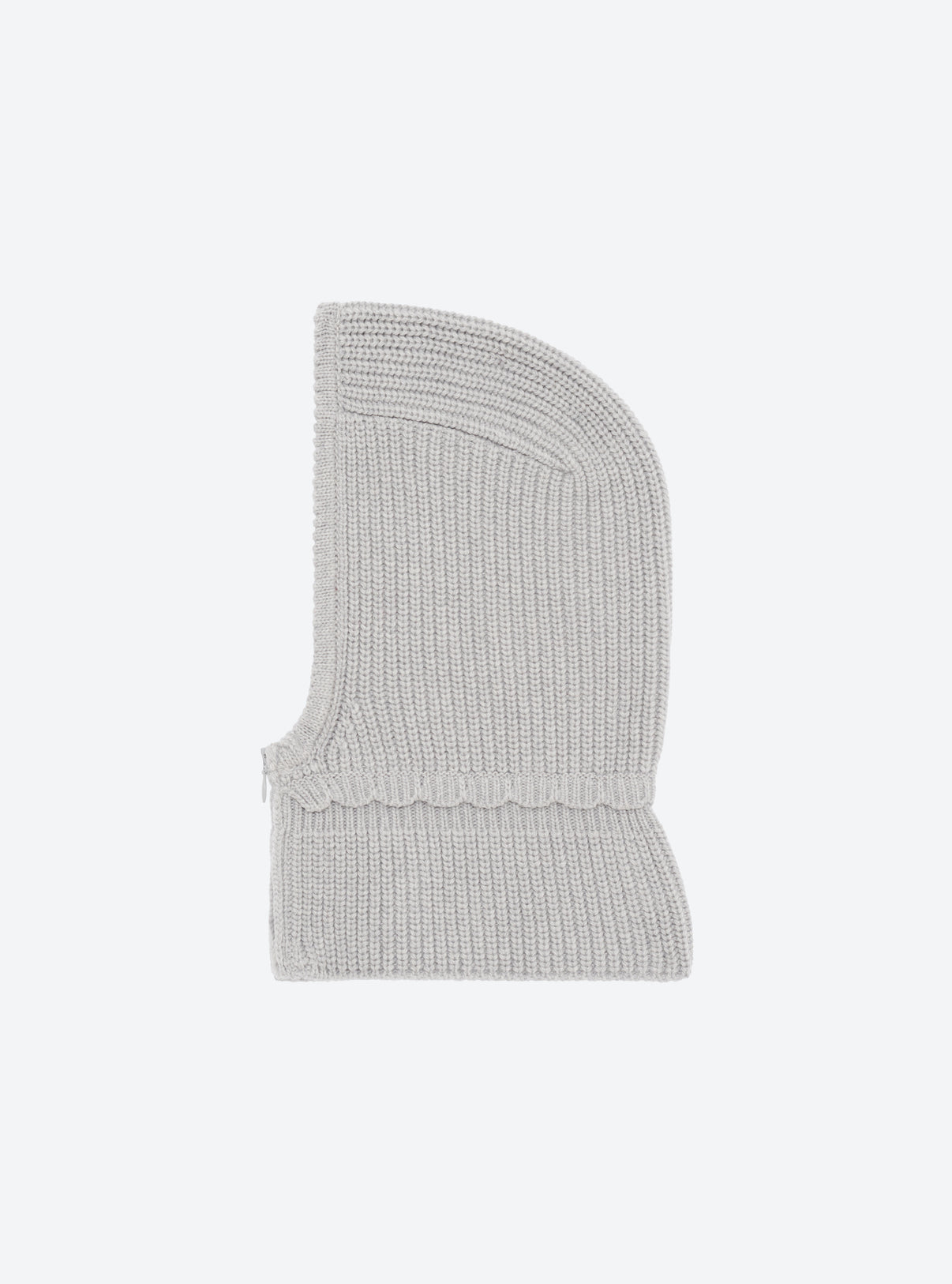 This warm, feminine, gray wool balaclava stands out with its elegant ribbed knit. The high-necked zip-front closure adds a modern touch, while the scalloped trim lends a delicate finish. This comfortable, versatile, new winter essential can be worn with all your looks.