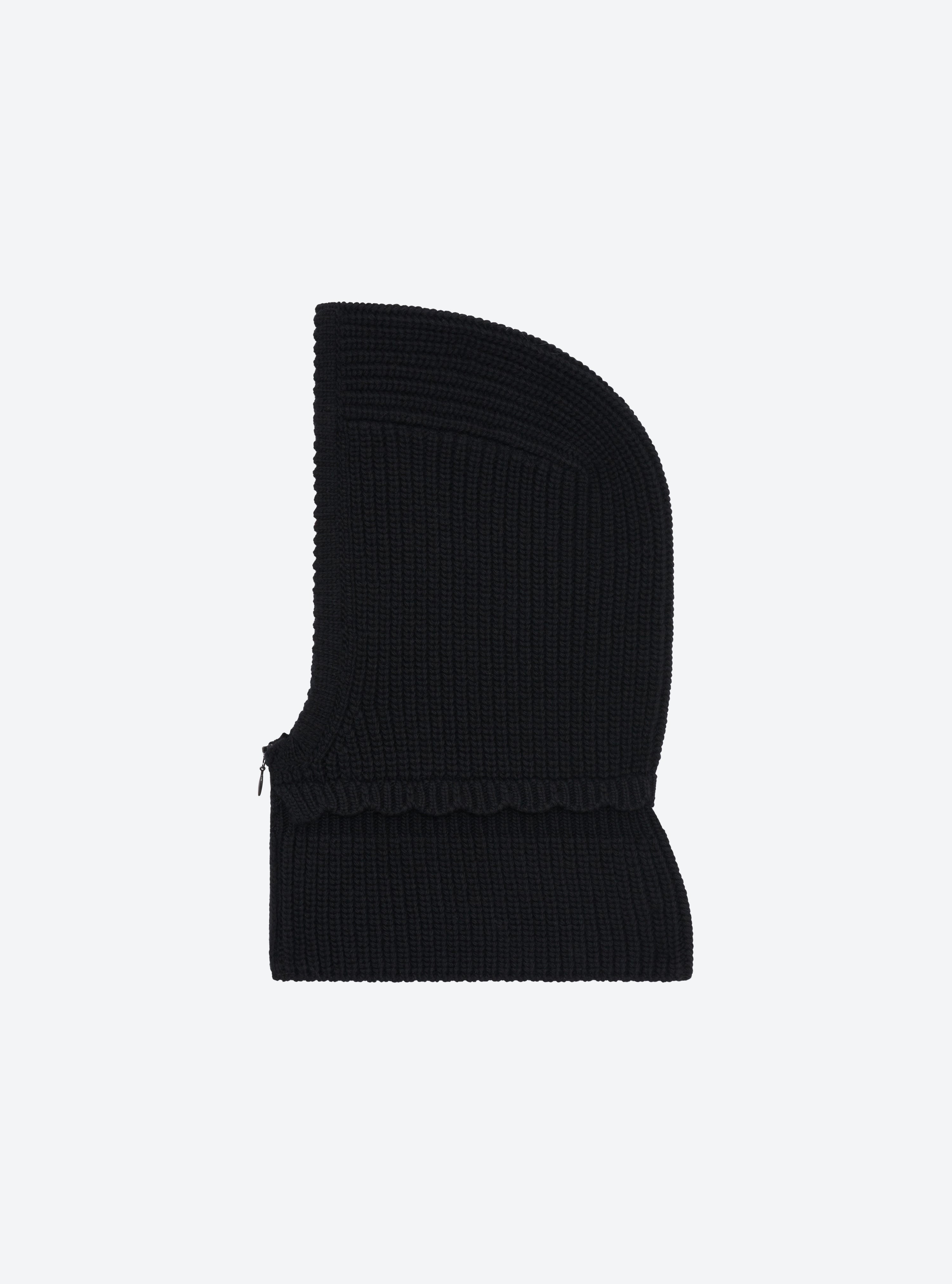 Zippered rib-knit balaclava deep black