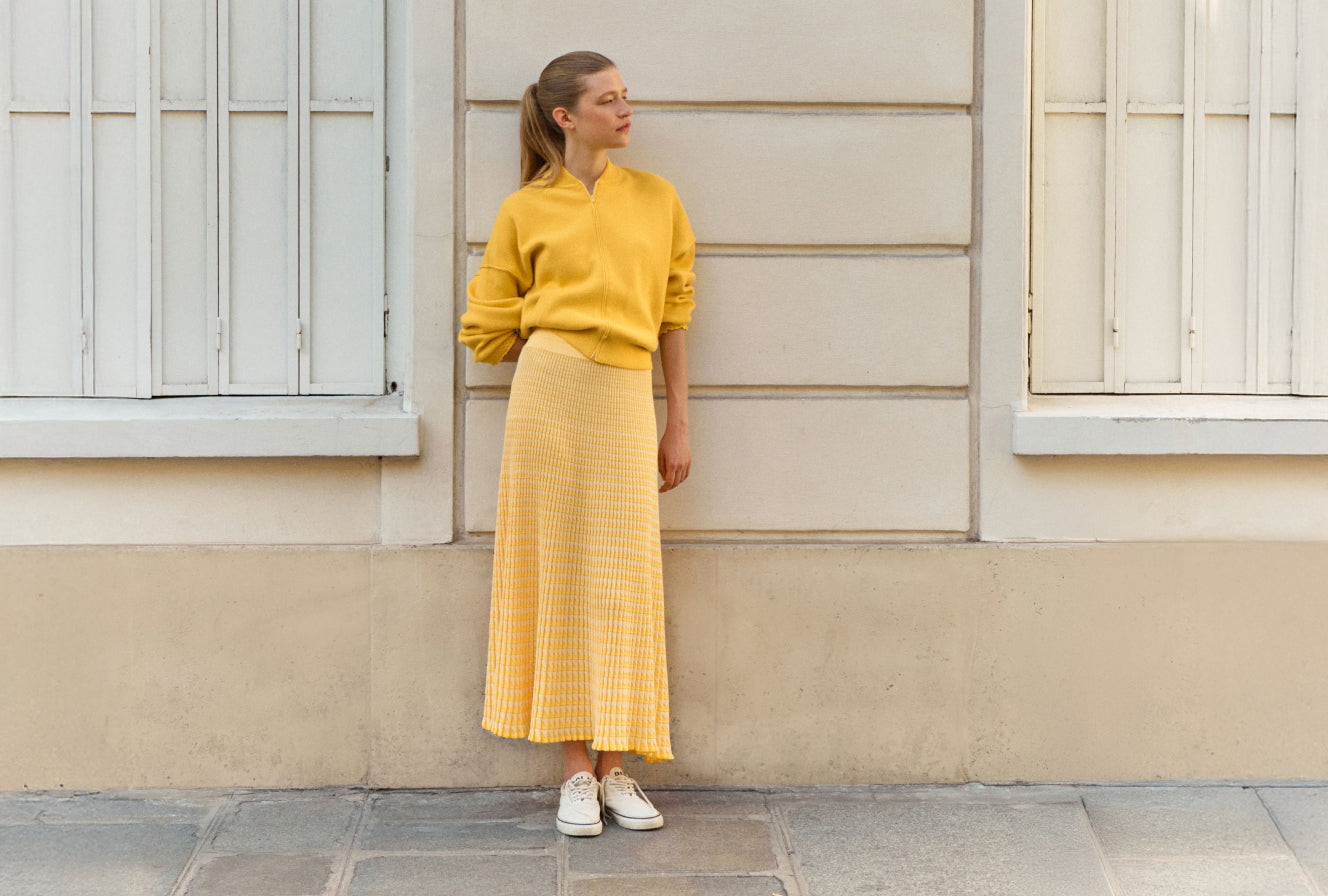 fluid skirt in an origami knit