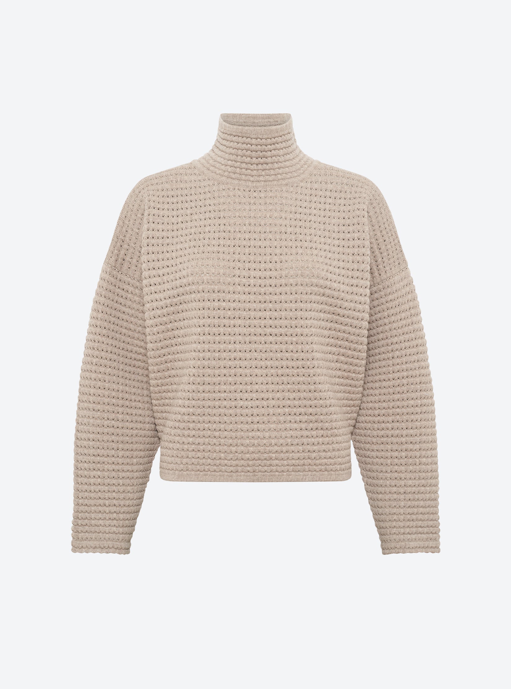 Molli's modern, comfortable, fine knit sweater is made in Italy from pure, soft, extra-fine wool. Its sublime, slightly openworked knit gives it a touch of elegance, while its generous high collar and straight sleeves offer beautiful structure and a sober, feminine drape.