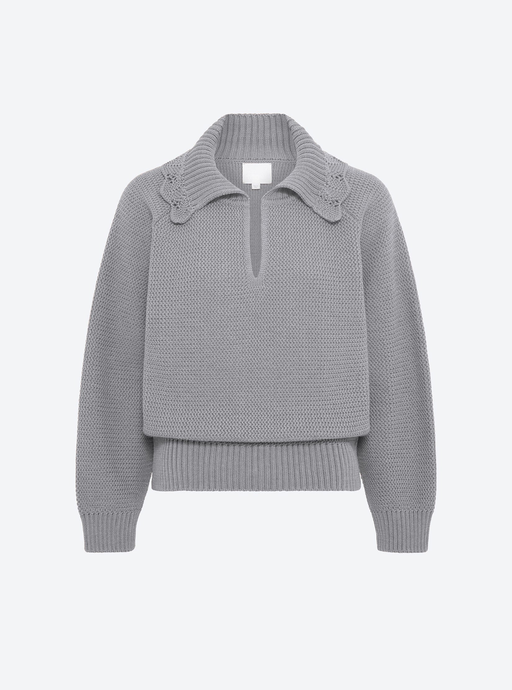 Made in Italy in a soft, comfy, wavy knit, this updated "smock" sweater is ideal to slip on when the weather gets chilly. Made from a soft, extra-fine wool yarn, it has a generous cut for great comfort and its wide ribbed collar, enhanced by an openwork-stitch edging, adds a delicate, feminine touch.