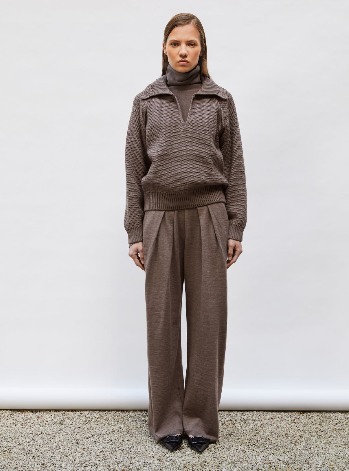 tricoté en Italie dans une pure laine douce et extrafine, ce pantalon en maille fine pour femme molli est un intemporel. sa maille jersey lui garantit un grand confort et ses plis sur le devant pour un effet "pantalon à pinces" lui apportent structure et élégance. sa large ceinture festonnée en maille stretch permet un bon maintien et un confort total, et flatte toutes les silhouettes.