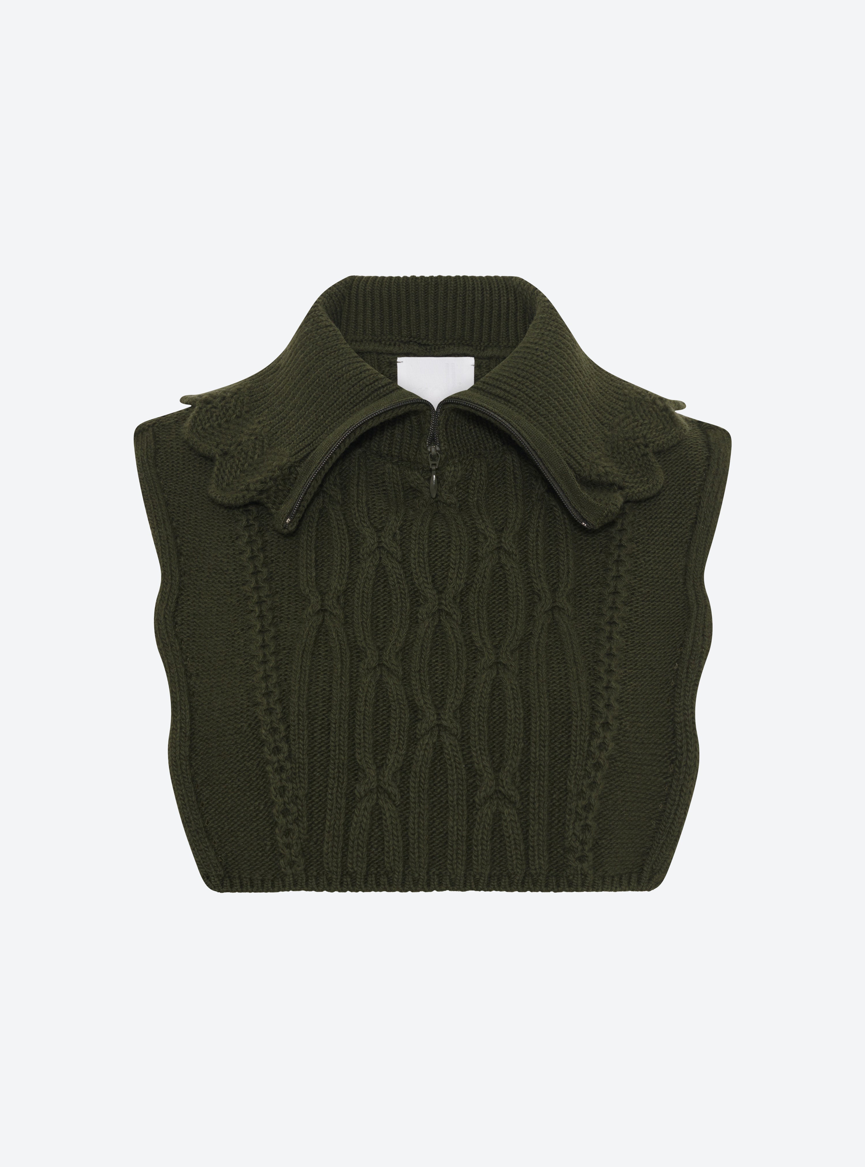 Le plastron en laine pour femme molli est doté de bords festonnés et de finitions en pointelle pour une note d'élégance, et d'une fermeture zippée qui allie praticité et modernité.